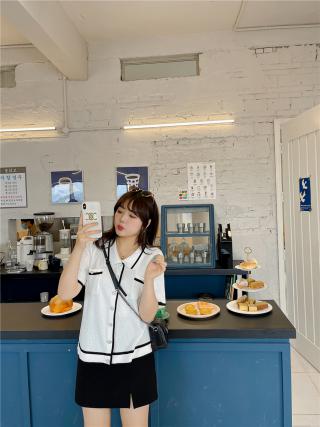 大码女装胖mm短袖针织开衫女2021夏季新款POLO领显瘦撞色上衣