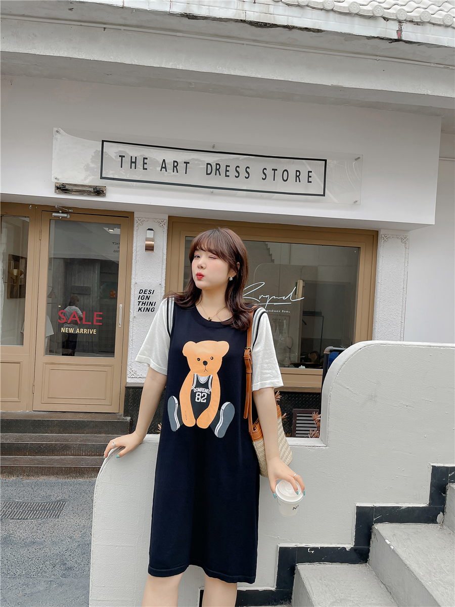 胖mm大码女装200斤短袖针织裙中长款2021春夏新款印花连衣裙