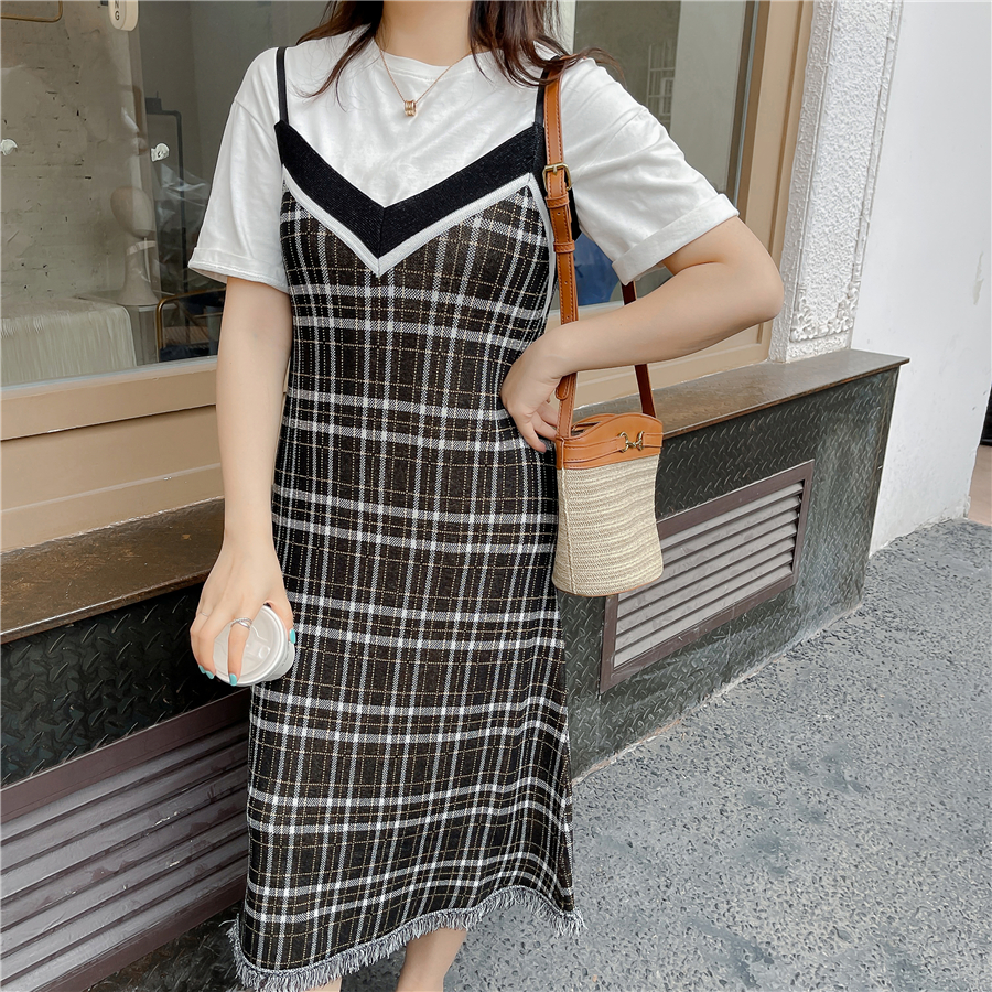 全网新品 趋势好货 大码女装格子吊带裙女2021夏季新款胖mm气质v领显瘦连衣裙